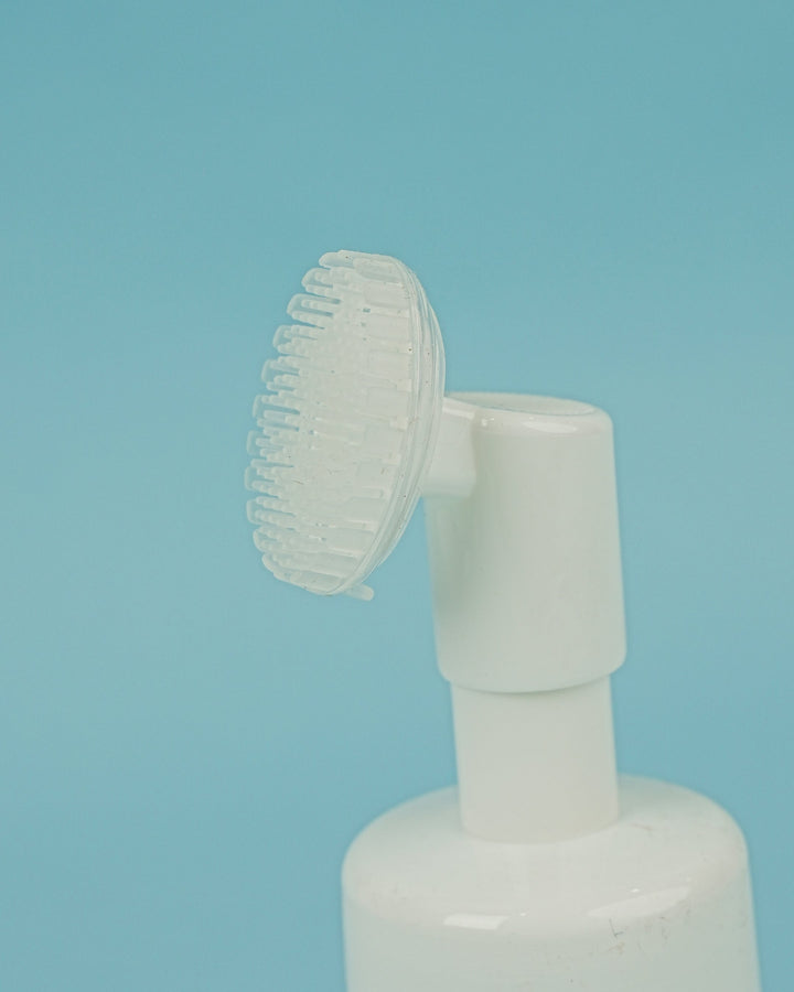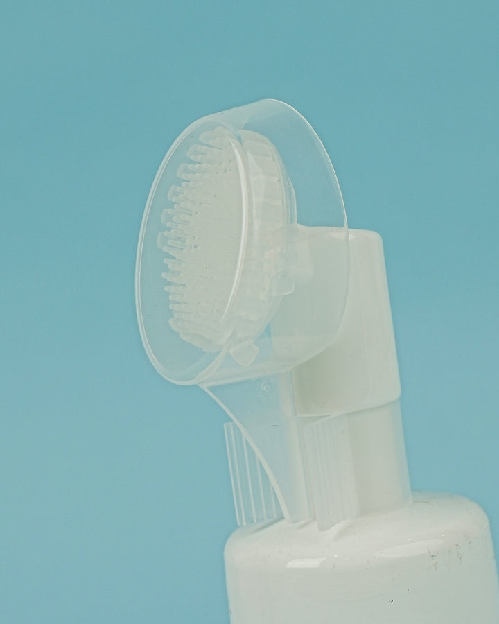 Apply to damp face using the built-in massage brush. Gently work in circular motions to lather and cleanse the skin. Rinse thoroughly with lukewarm water. Use 1–2 times daily, especially after wearing sunscreen or makeup.