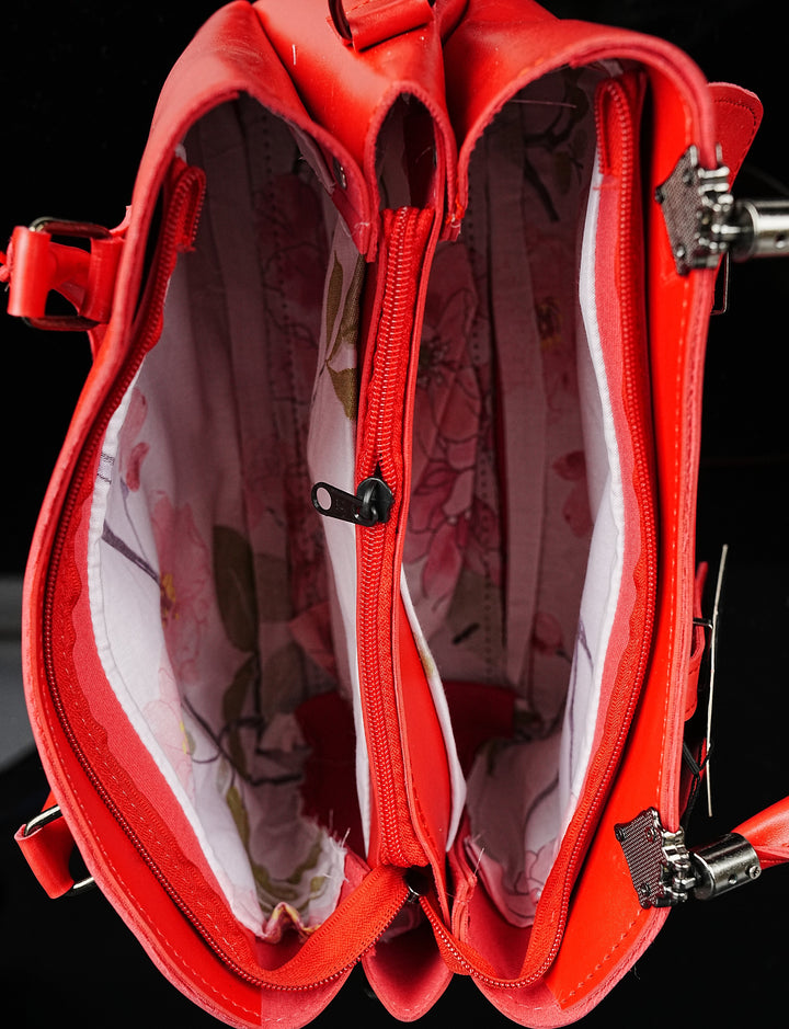 - Scarlet Luxe: This eye-catching red handbag with a shimmering silver buckle is the ultimate accessory for any fashionista.