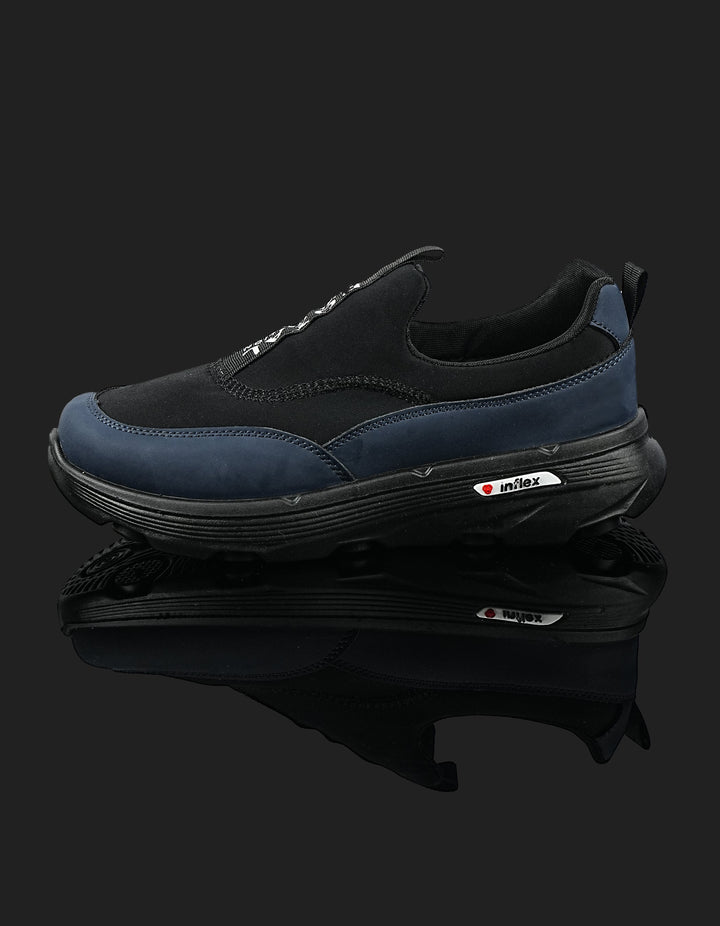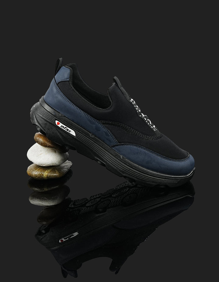 Step into everyday comfort with these stylish Black & Navy slip-on sneakers. Designed with a modern silhouette and easy-to-wear slip-on style, these shoes are perfect for men who value both fashion and practicality. The dual-tone black and navy design brings a sleek, versatile look that works well with jeans, joggers, or even casual office wear. With cushioned soles and durable stitching, they provide all-day comfort and support for walking, casual outings, or daily wear.