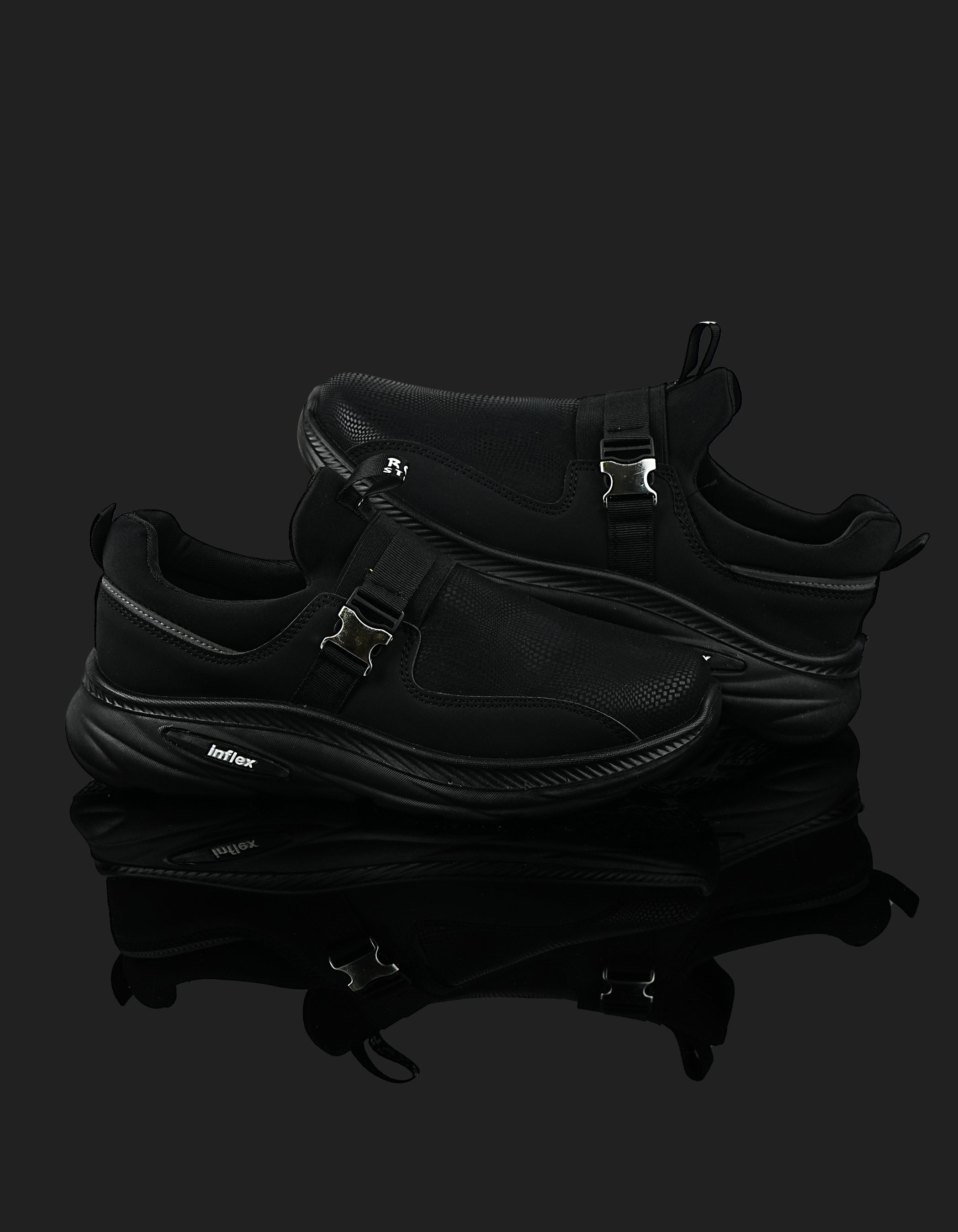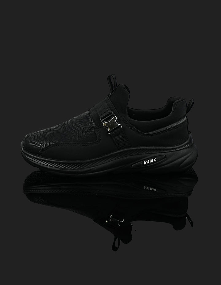 The K-808 Black Slip-On Sports Shoes combine sleek style with maximum comfort. Crafted with a breathable mesh upper and cushioned sole, these shoes provide long-lasting wear. The metallic buckle adds a premium touch, making them perfect for both casual and sporty outfits.