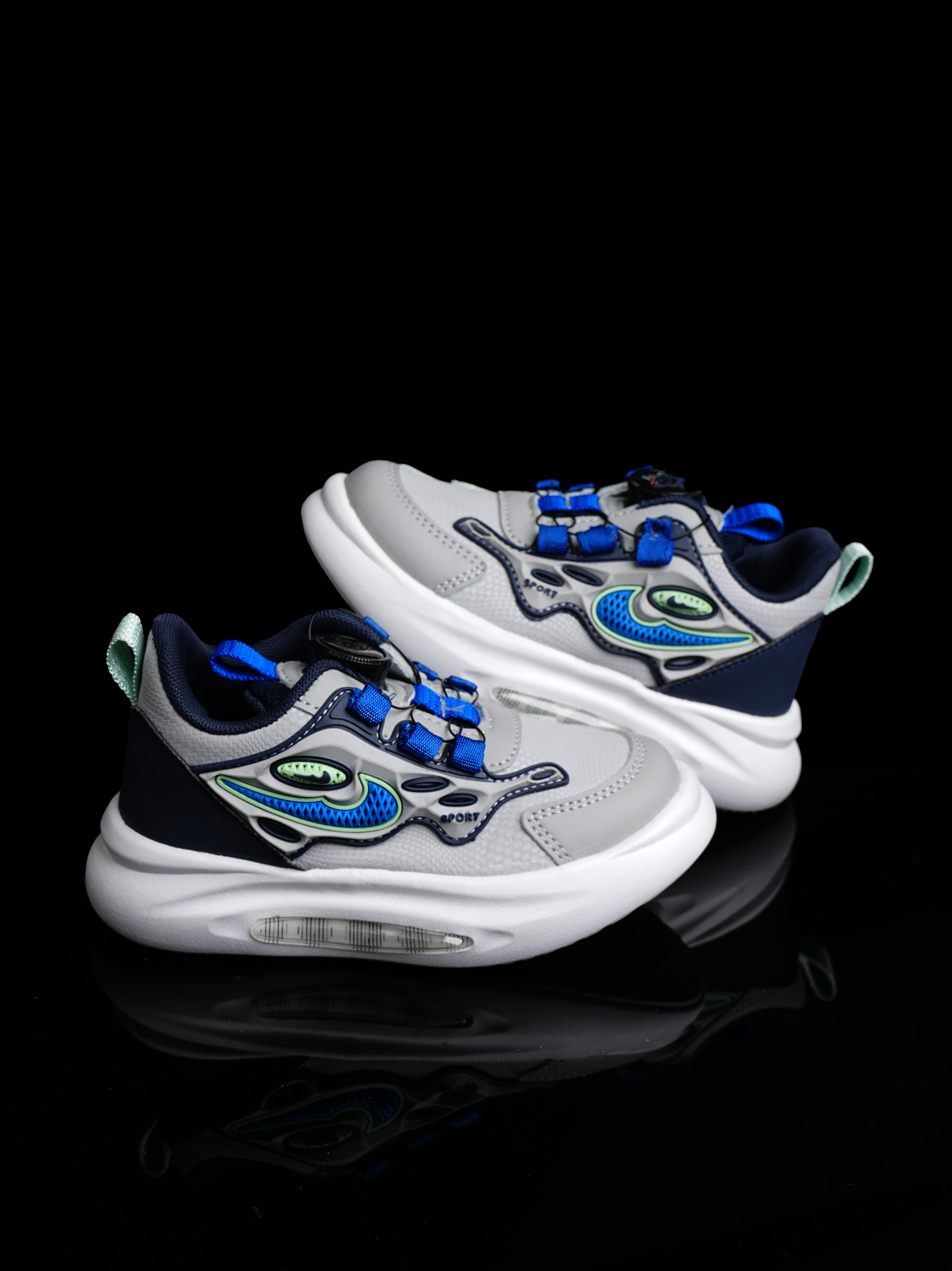 Kids' Air Cushion Trainer with Dial Closure | Gray & Blue Performance Sport Shoes