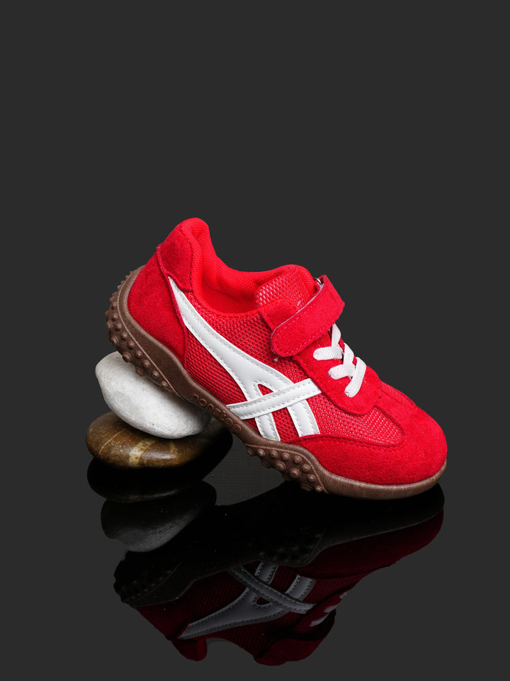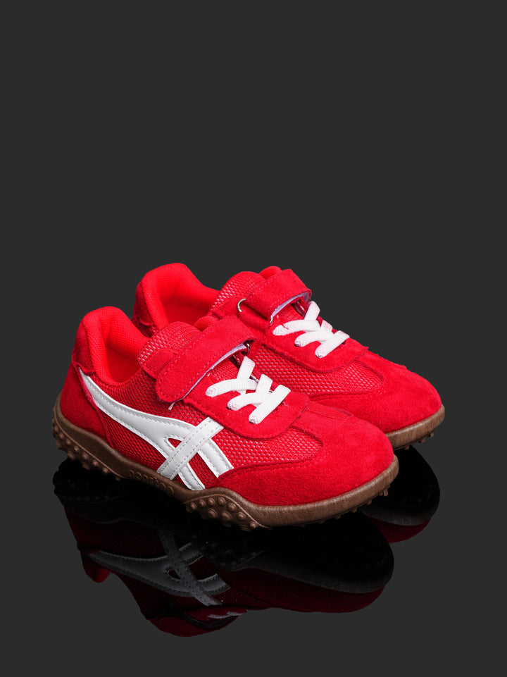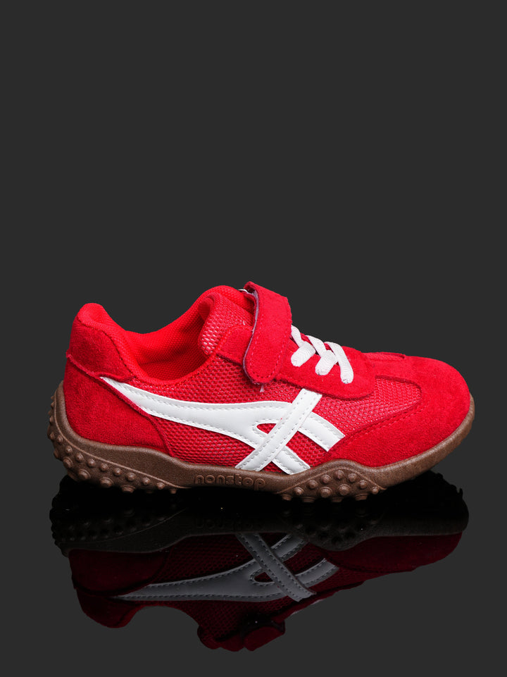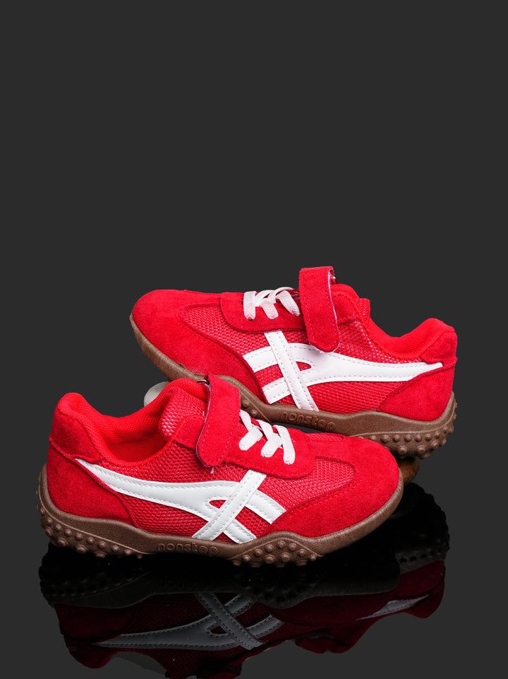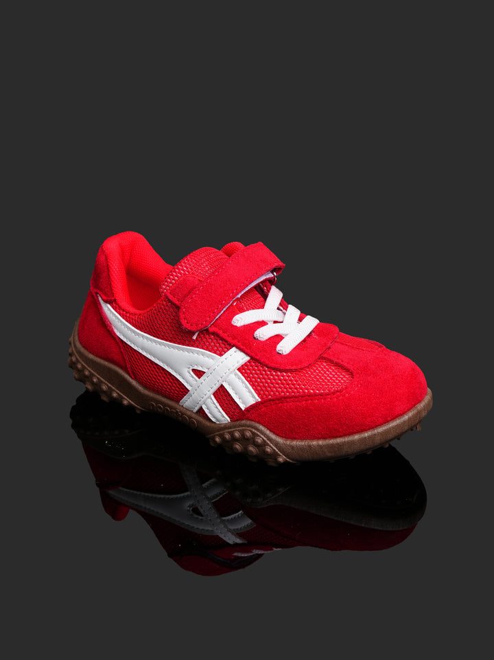 Give your little champion the perfect shoe for play with these vibrant Toddler/Kids' Retro Play Sneakers! Featuring an eye-catching Racing Red color with crisp white accents and a contrasting brown sole, these shoes offer a fun, retro-athletic look designed to handle serious playtime.