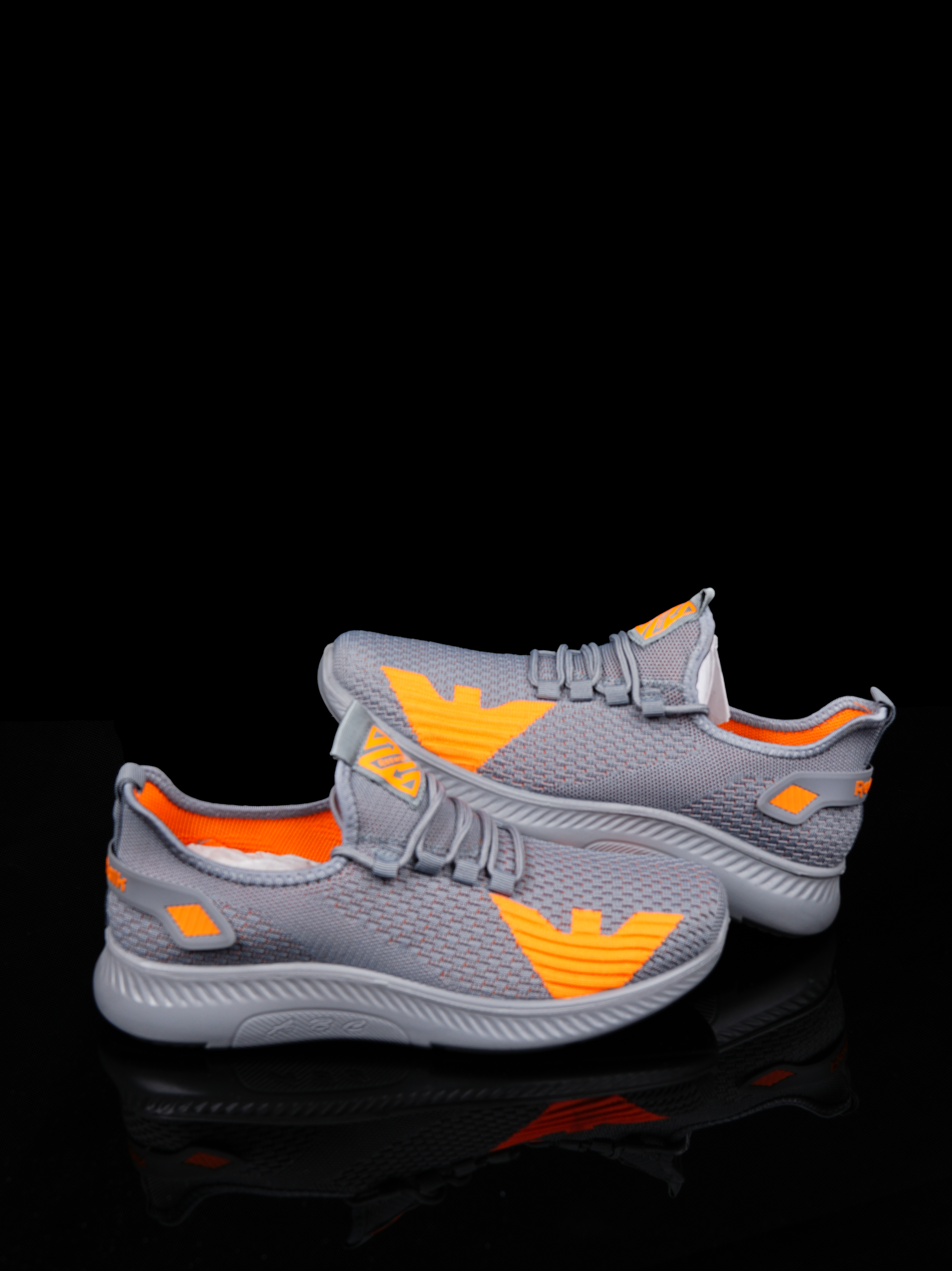 Aspen Grey & Neon Orange Knit Sports Trainers | Lightweight Breathable Athletic Sneakers