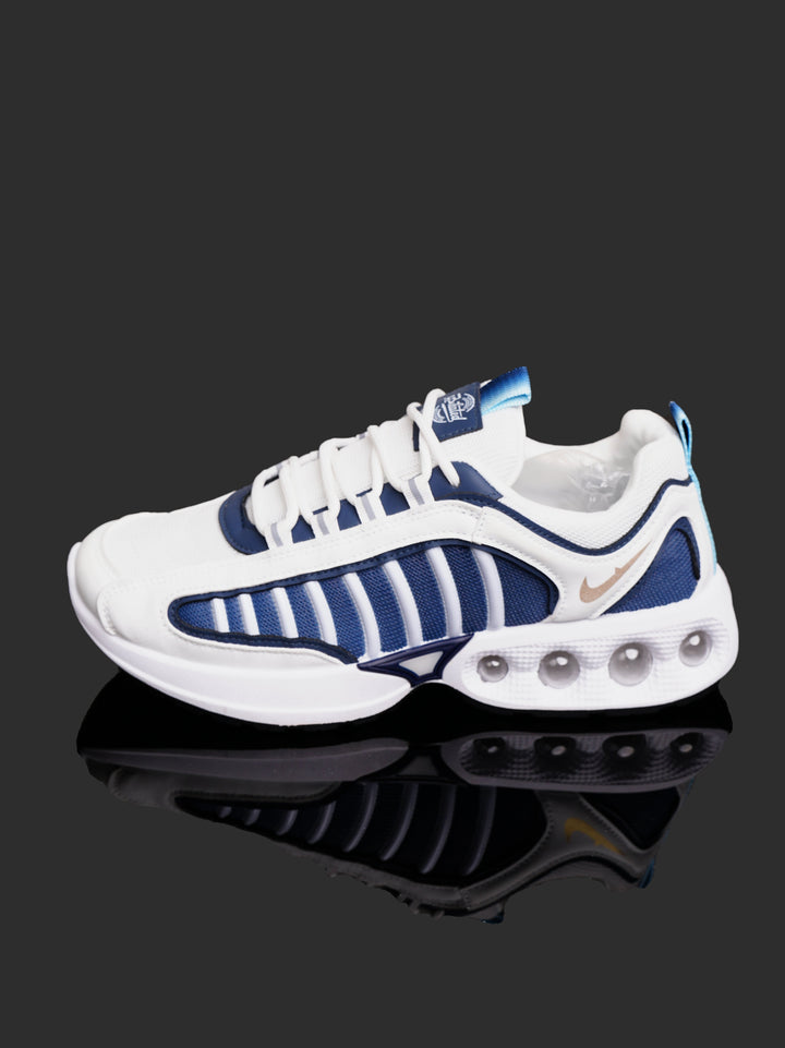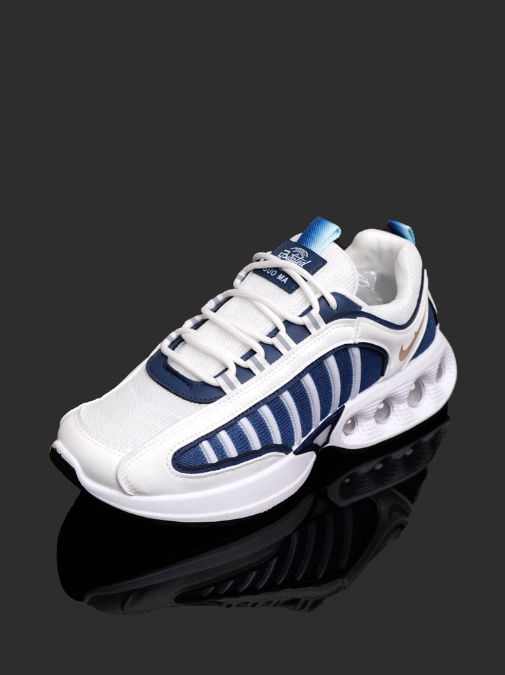 Breathable Design: The upper uses a white mesh base for maximum airflow, keeping feet cool, complemented by navy blue synthetic overlays that provide a dynamic aesthetic and structural support.