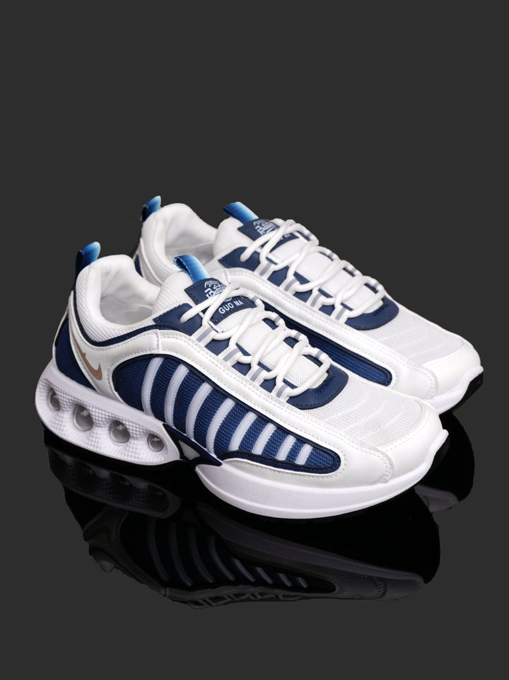 Catch eyes and enjoy all-day comfort with these vibrant Men's Retro Sport Sneakers. The classic White and Navy Blue colorway, accentuated by bold striped overlays, offers a fresh, nautical-inspired look that's perfect for casual and active settings.