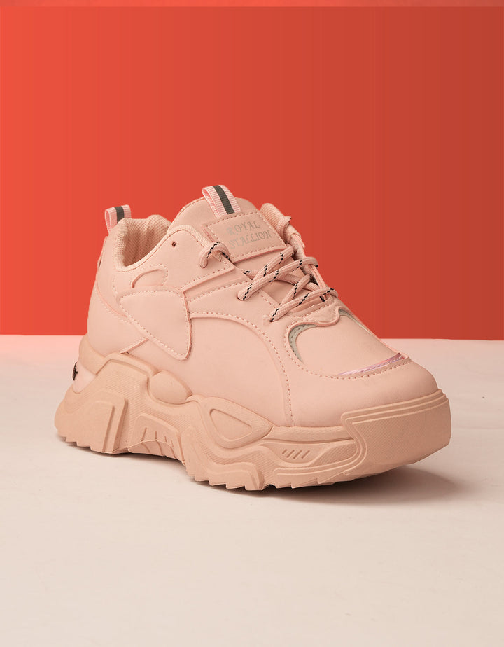 Feel the warmth of the Sunset Glow Pink Sneakers, where comfort meets sunset hues. These soft pink sneakers with a vibrant orange undertone offer a playful yet refined look for any casual ensemble. The chunky soles add a modern twist to the classic sneaker design, providing both elevation and all-day comfort.