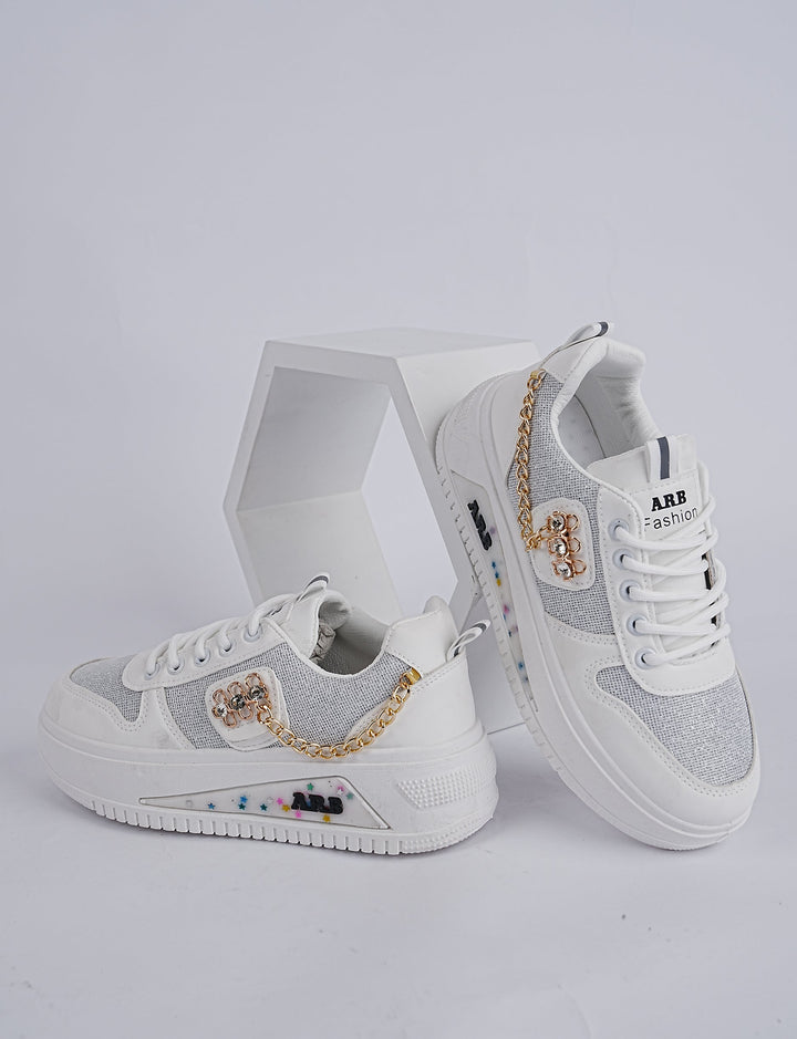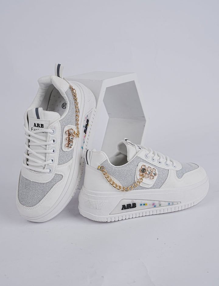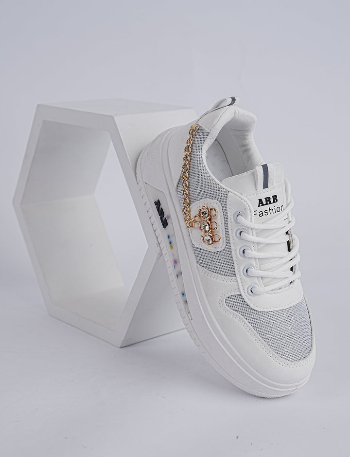 Blush Luxe Chain Sneakers White – Elegant Style, Everyday Comfort